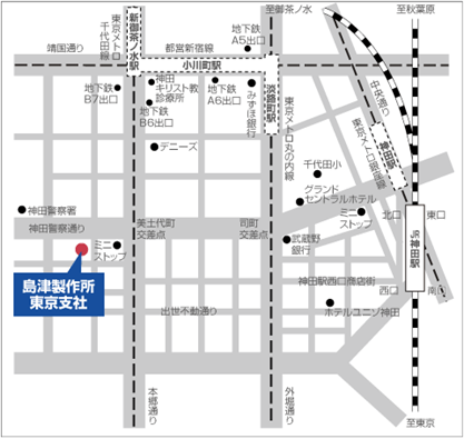 | 会 場 | 株式会社島津製作所 東京支社 https://www.shimadzu.co.jp/aboutus/company/access/tokyo.html 〒101-8448 東京都千代田区神田錦町1-3 TEL:03-3219-5555 ![]() ・都営新宿線 小川町駅 ・東京メトロ 千代田線 新御茶ノ水駅、丸の内線 淡路町駅 B7出口より徒歩6分 ・東京メトロ 銀座線 神田駅より 徒歩10分 ・JR神田駅 西口より 徒歩10分 |